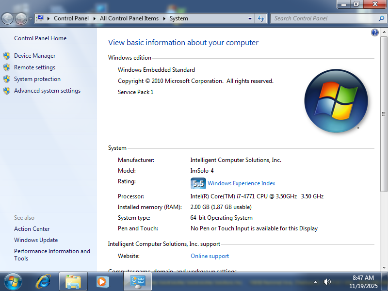 The Windows Embedded Standard (64-bit) OSThis was my Im Solo-4 G3 Desktop before I installed a new HDD and made the changes as noted much further below (click on any of these pics to enlarge them):