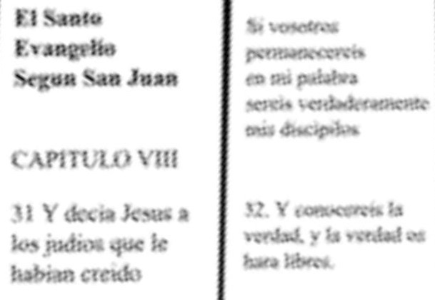 conocereis la verdad, y la verdad os hara libres. (Which is basically in English: The Holy Gospel According to Saint John / Chapter VIII / And Jesus said to the Jews