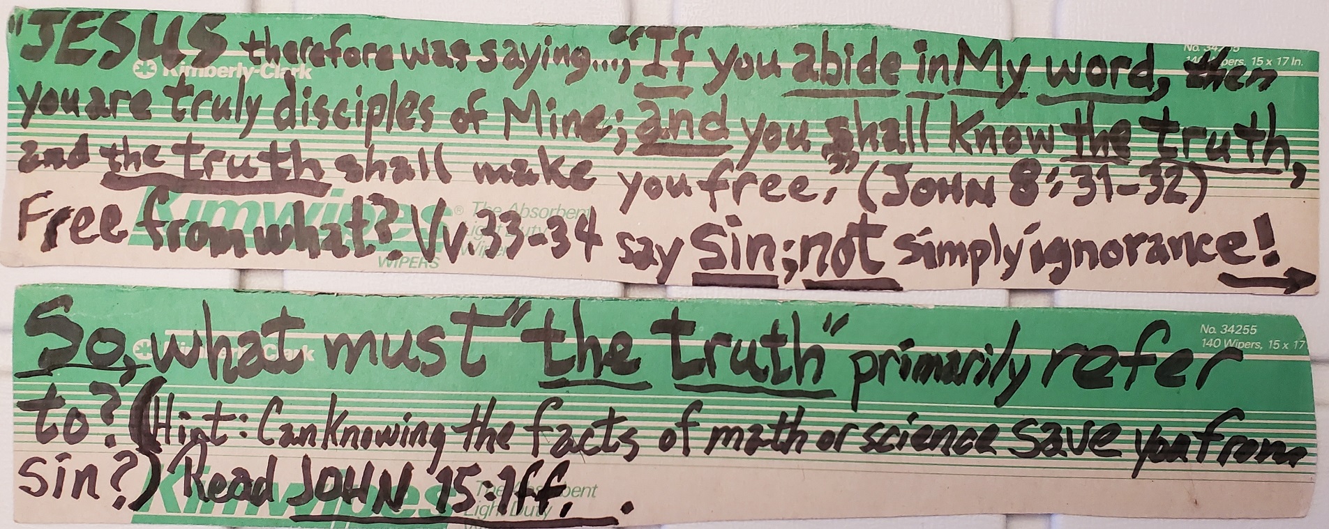 ago, while working at my first long term job (XYtron, Inc.), I wrote out the following for my co-workers; which explained what John 8:32 was all about: